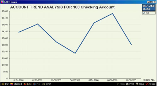 Once TACTGRAPH is installed, the Graphing option will either appear on the appropriate screen menu or you will be prompted after viewing or printing a report that can also be graphed.